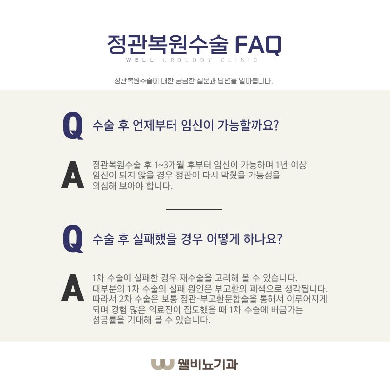 회복 실패는 정관을 다시 붙인 후 정자 검사에서 일정 수준의 정자가 배출되지 않는 상황을 포함합니다. 막히거나 손상된 정관: 정관은 고환에서 요도로 정자를 운반하는 작은 관입니다. 정관 절제술로 인해 절단된 말단 주변에 큰 반흔 조직이 생겼거나 장기간의 폐쇄로 인해 정관의 다른 부위가 막힌 경우 재연결이 성공하지 못할 수 있습니다. 고환 생식력 문제: 정관이 성공적으로 연결되더라도 고환 생식력 문제로 인해 정자 수가 적거나 정자 운동성이 저하될 수 있습니다. 정관 수술 후 몇 년이 지나면 고환의 생식 능력이 떨어질 수 있습니다. 이것은 성공적인 수술 후에도 임신을 어렵게 만들 수 있습니다. 정자에 대한 면역 반응: 일반적으로 정자는 면역 반응을 일으키지 않습니다. 그러나 정관 수술 후 오랜 시간이 지나면 신체는 정자에 대한 면역 반응을 시작합니다. 이로 인해 정자가 성공적으로 정관을 통과하더라도 정자를 공격하고 파괴하는 항체가 신체에 생성됩니다. 이것은 성공적인 수술 후에도 임신을 어렵게 만들 수 있습니다. 기타 의학적 상태: 호르몬을 포함하여 남성 생식력에 영향을 줄 수 있는 다른 많은 의학적 상태가 있습니다. 성공적인 수술 후에도 호르몬 불균형, 유전적 이상, 특정 약물이나 질병과 같은 상태로 인해 임신이 더 어려워질 수 있습니다. 정관 절제술이 생식력 회복에 항상 성공적인 것은 아니라는 점을 명심하십시오. 성공 가능성에 영향을 미칠 수 있는 많은 요소가 있습니다. 정관 절제 역전 수술을 전문으로 하는 자격을 갖춘 비뇨기과 전문의와 상담하여 성공 가능성을 평가하는 것이 가장 좋습니다.